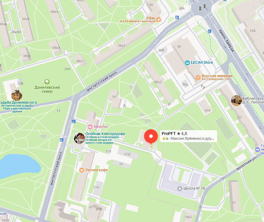 НОВЫЙ Адрес: Институтский пр, д. 25 (прежний адрес пр. Тореза дом 36, первый вход в остинницу «Спутник» со стороны Институтского пр. )