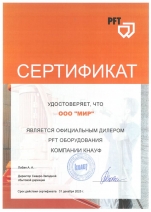 Сертификат дилера штукатурной техники PFT 2020 г. Всегда в наличии запчасти, расходные материалы, сервисное обслуживание и ремонт станций.